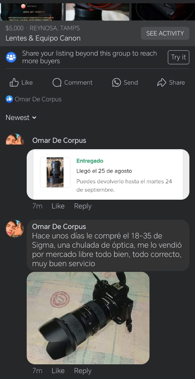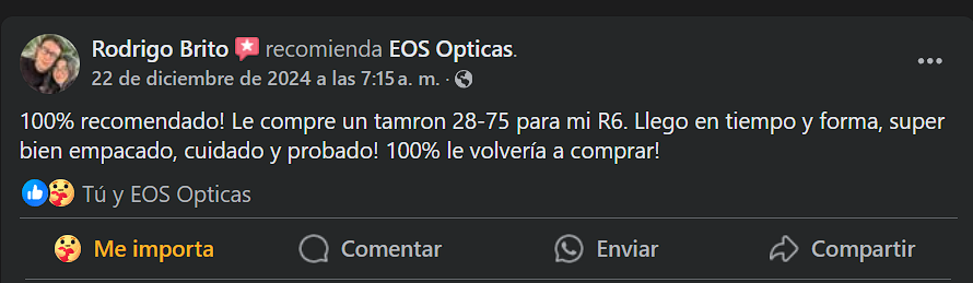 100% recomendado! Le compre un tamron 28-75 para mi R6. Llego en tiempo y forma, super bien empacado, cuidado y probado! 100% le volvería a comprar.